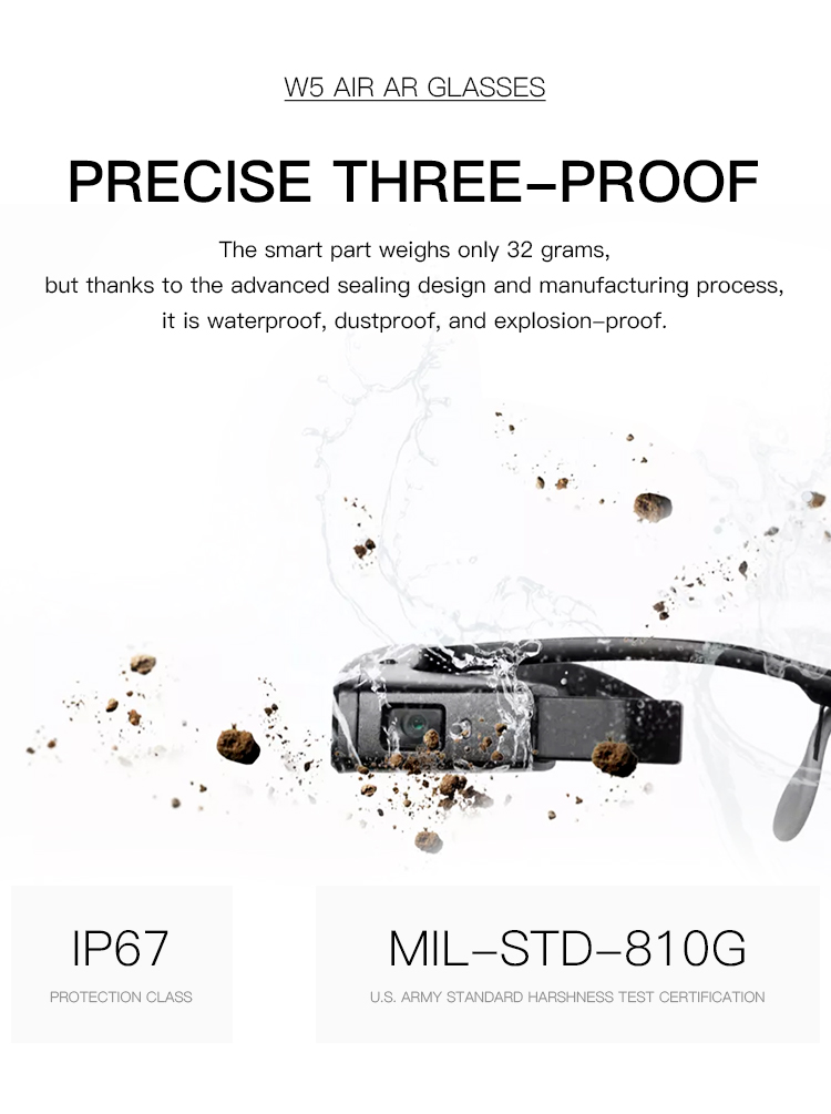 요약하면, W5 AIR 스마트 안경은 견고한 내구성, 방폭 안전성, 고급 AI 기반 AR 기능, 고성능, 연장된 배터리 수명, 다용도 자기 장착 시스템을 결합하여 다양한 응용 분야에 사용할 수 있는 다용도의 안정적인 솔루션입니다.